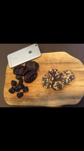セミドライフルーツはブドウ、プルーンともに絶妙な乾燥具合で単品でもデザートにも使える。