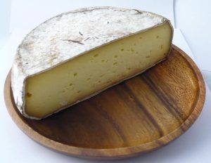 うっすらと白カビを纏った表皮、下には非常にクリーミーで熟成によるトロリとした食味。塩味からミルクの風味まで広がりのあるタイプ。