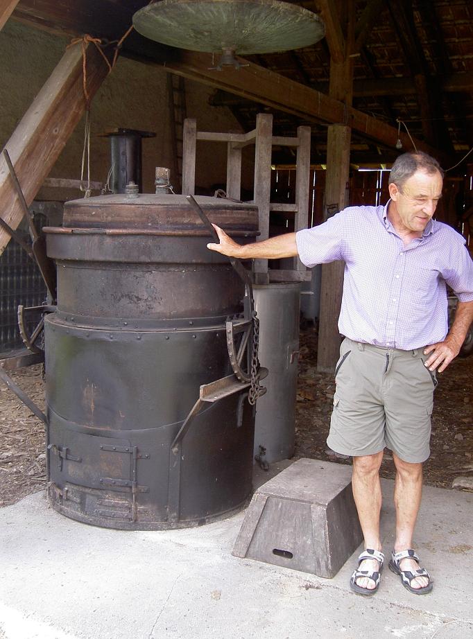 ブルゴーニュのドメーヌでは珍しい蒸留器。これでマールやラタフィアを造ります。