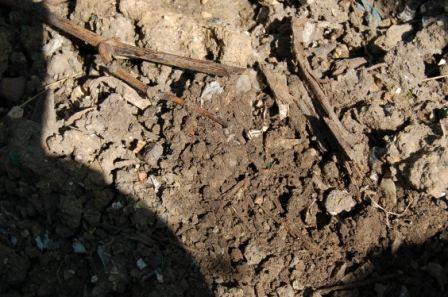 見えにくいですが上の画像、コケが生えているのが隣のうね。下の画像がベレッシュのうね。1m違いの土の状態です。
