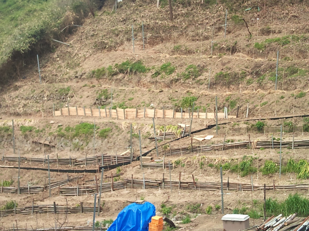 土留めや雨で崩れないように排水溝を設置したりと相変わらず土木作業が続いてます。