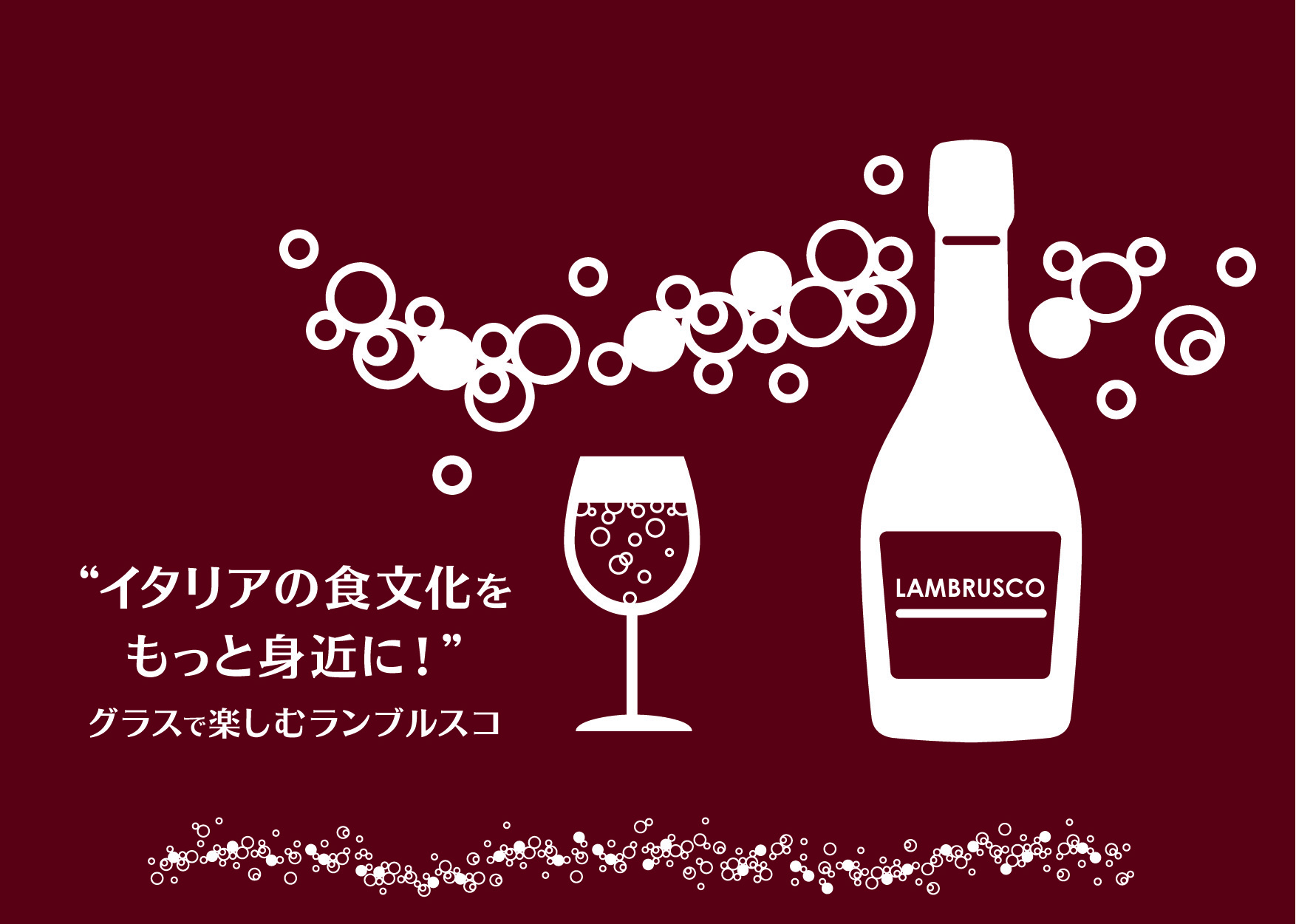 『ランブルスコ』とは、美食の街として有名な北イタリア、エミリア・ロマーニャ州で造られる微発泡の赤ワインのことです。