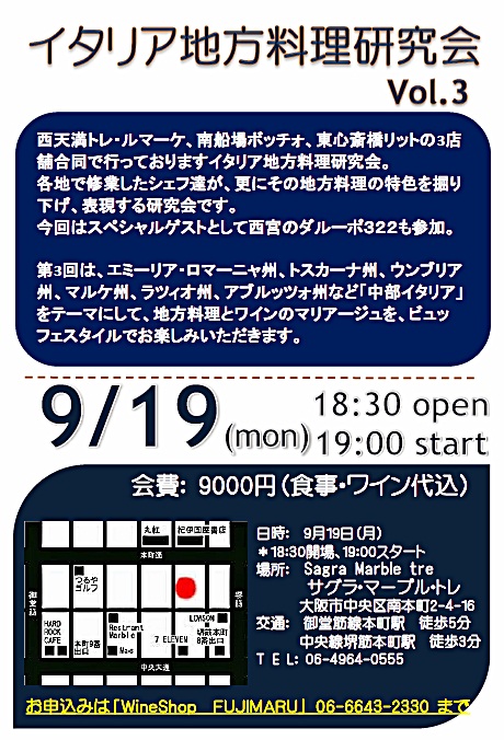 約1年ぶりの開催イタリア地方料理研究会の第3回のお知らせです。
