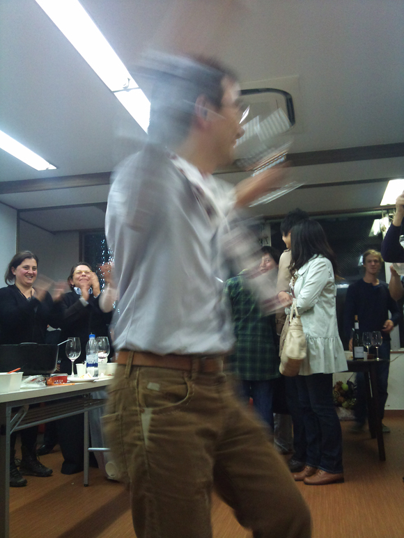ここからはワインショップFUJIMARUの2階のフリースペースにて打ち上げの模様を。