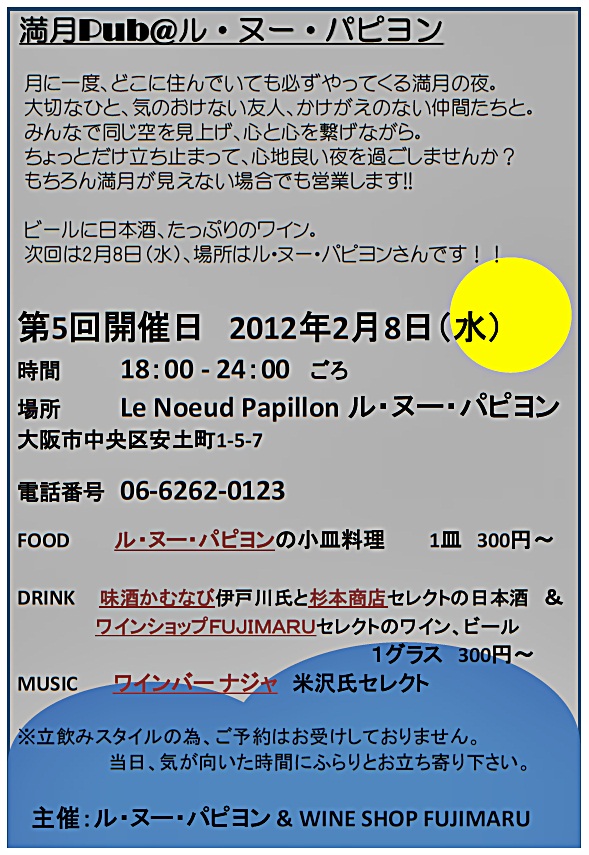 「ル・ヌー・パピヨン」さんでの満月Pub、
