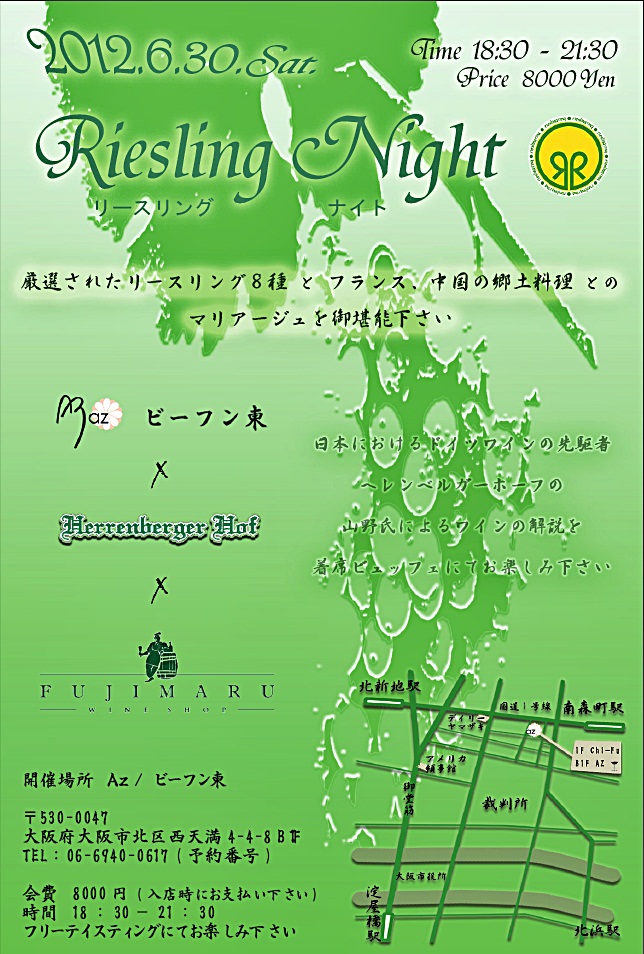 内容:ドイツのリースリング8種類のフリーテイスティングとコース料理代、
