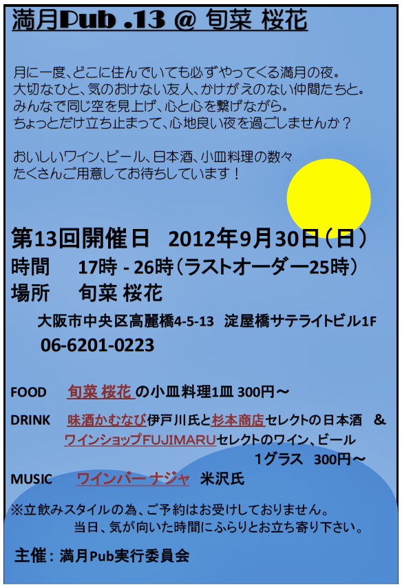日本料理店での満月Pubは、谷町かむなびさん以来でしょうか?