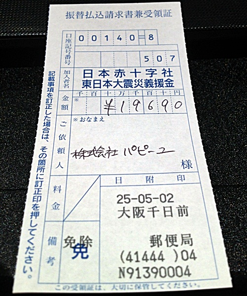 「日本赤十字社東日本大震災義援金」としてお振込してきました。