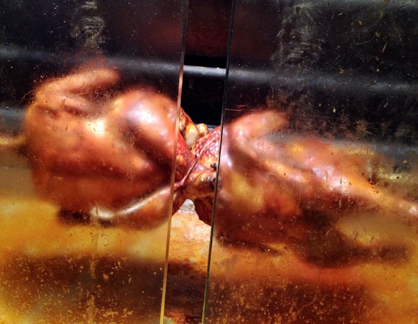 うまそうな脂を滴らせながらゆっくりと回転する一羽の鶏。