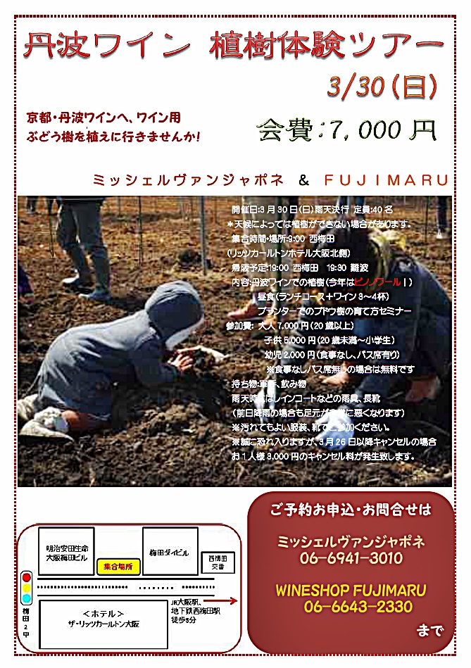 そう。今年も行きます。丹波ワイン植樹体験ツアー!