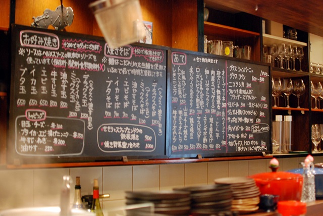 あてをいただきつつも視線は黒板へ。お好み焼は何にしようかと、
