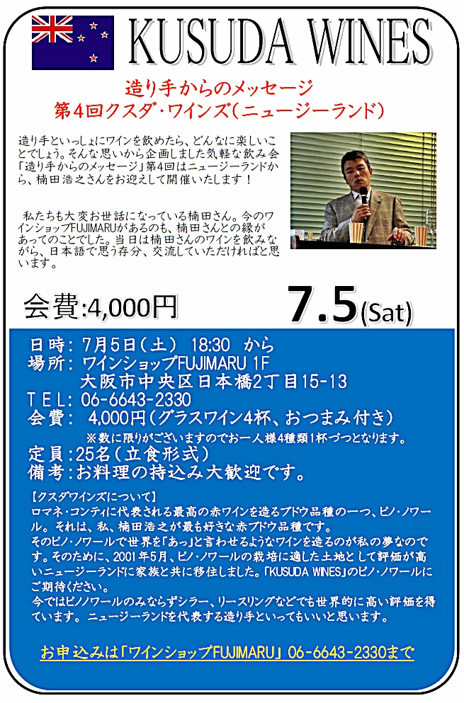 クラブパピーユ『造り手からのメッセージ第4回クスダワインズ(ニュージーランド)』