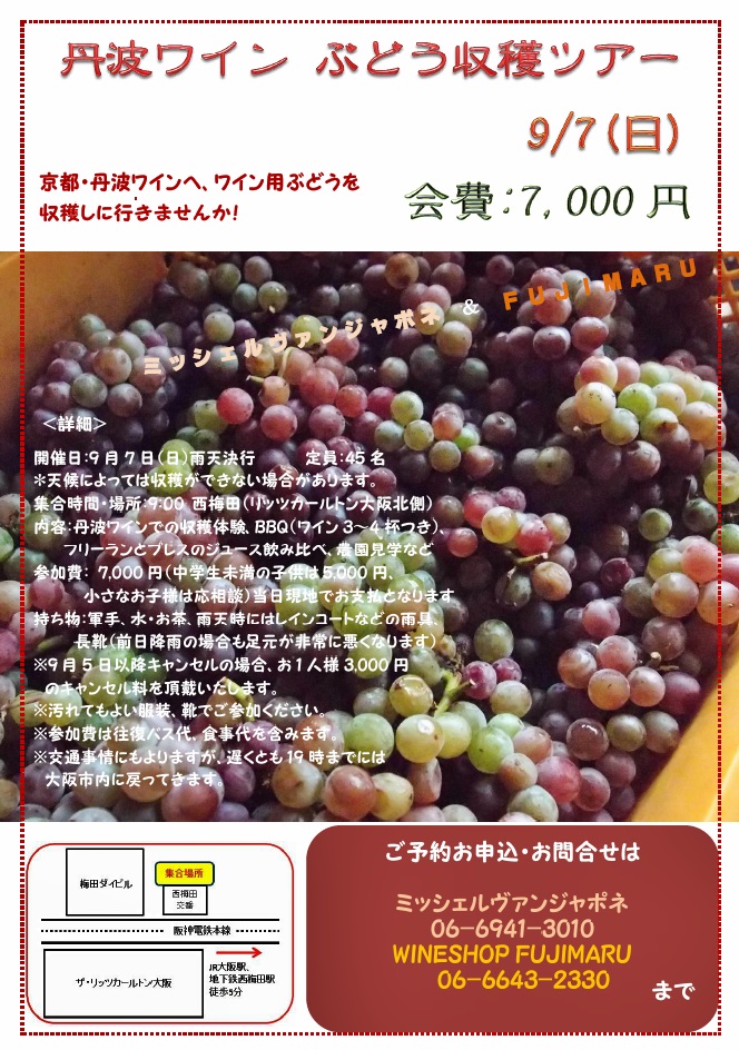 さてさて、毎年恒例になりました丹波ワインへのぶどう収穫ツアー、