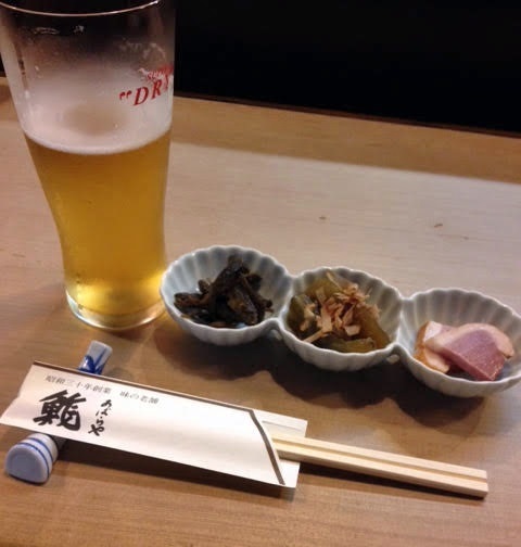 地味ですが滋味のあるお通しにビールが寄り添い、少しだけ緊張が解れてきました。