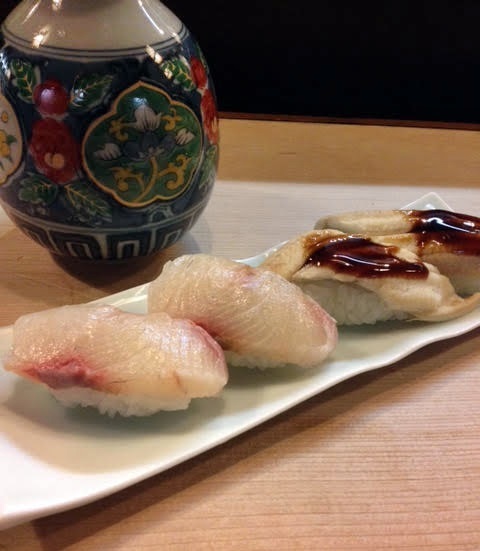 鯖寿司の余韻覚めやらぬなか、カンパチと穴子の握りでソフトランディングへ。