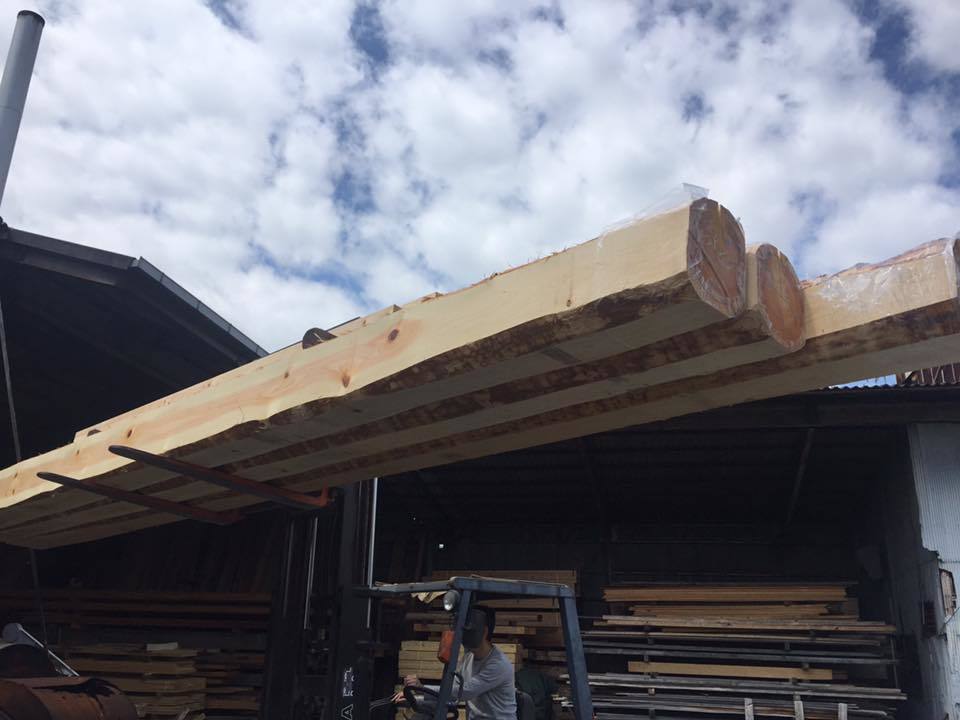 大阪の居酒屋の現場中。6M超の檜材3本。この材から素晴らしいカウンターが生まれそう!!