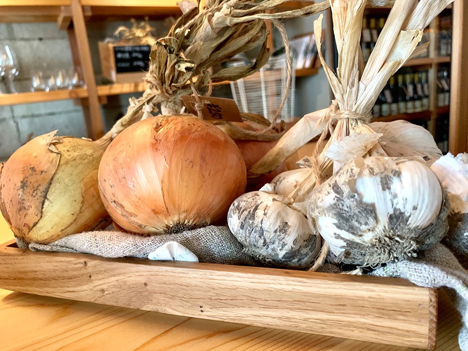 * 自社農園で採れた玉葱、大蒜(にんにく)