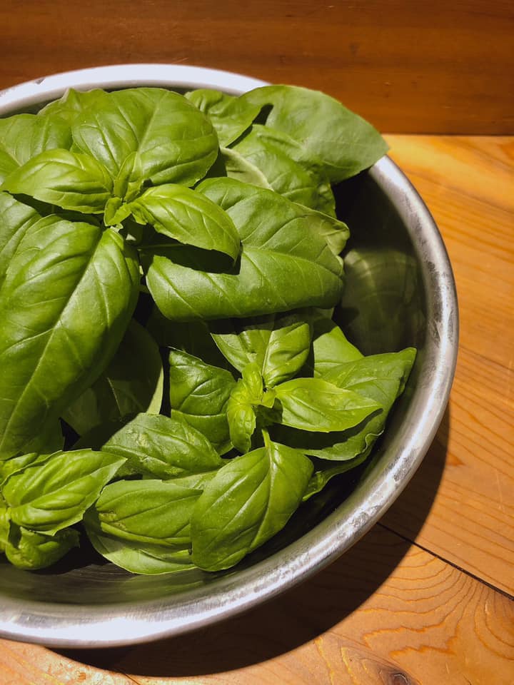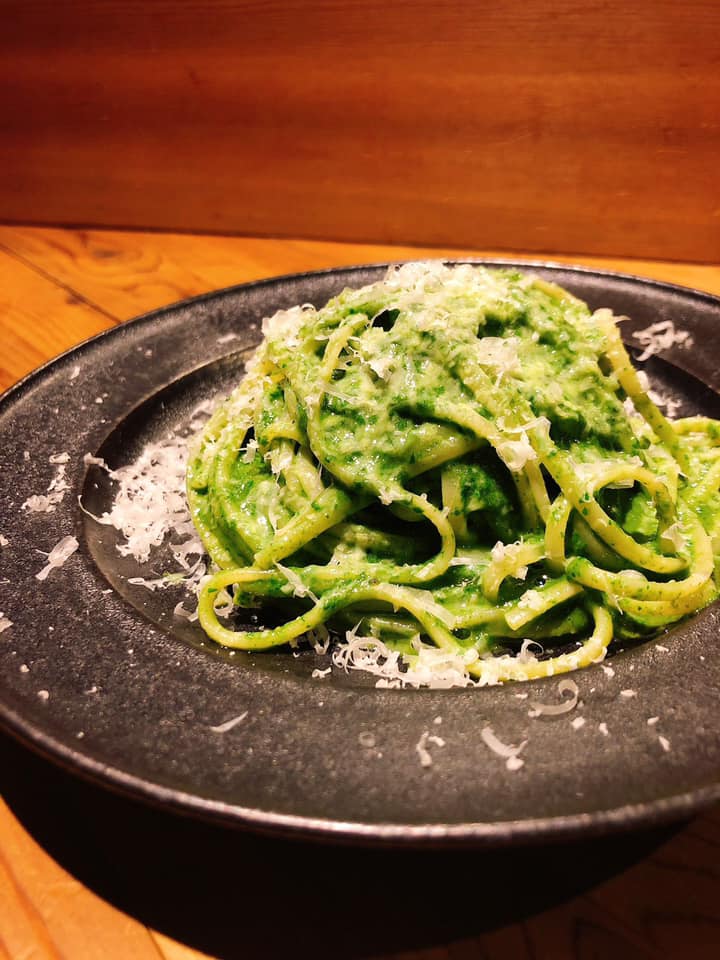 ○自家菜園で育てたバジルのジェのヴェーゼソース70g ¥1200 1人前 *オーガニックの古代小麦のショートパスタ