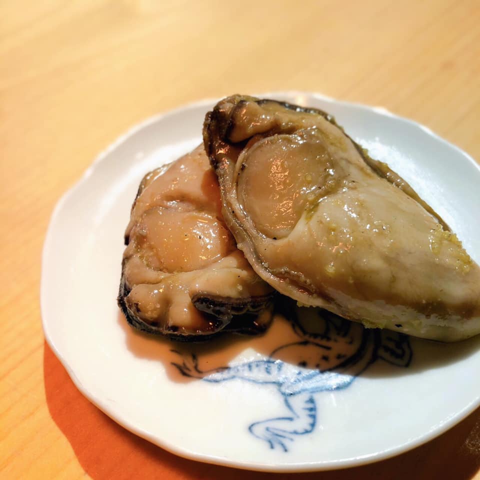 季節野菜の冷たい炊き合わせは、そのままでも、温めても美味しいメニュー。兵庫県相生市産”千珠牡蠣”の自家製オイル漬けは、プリッと大ぶりで牡蠣の旨味がつまっているので、お酒も進むメニューとなっております。