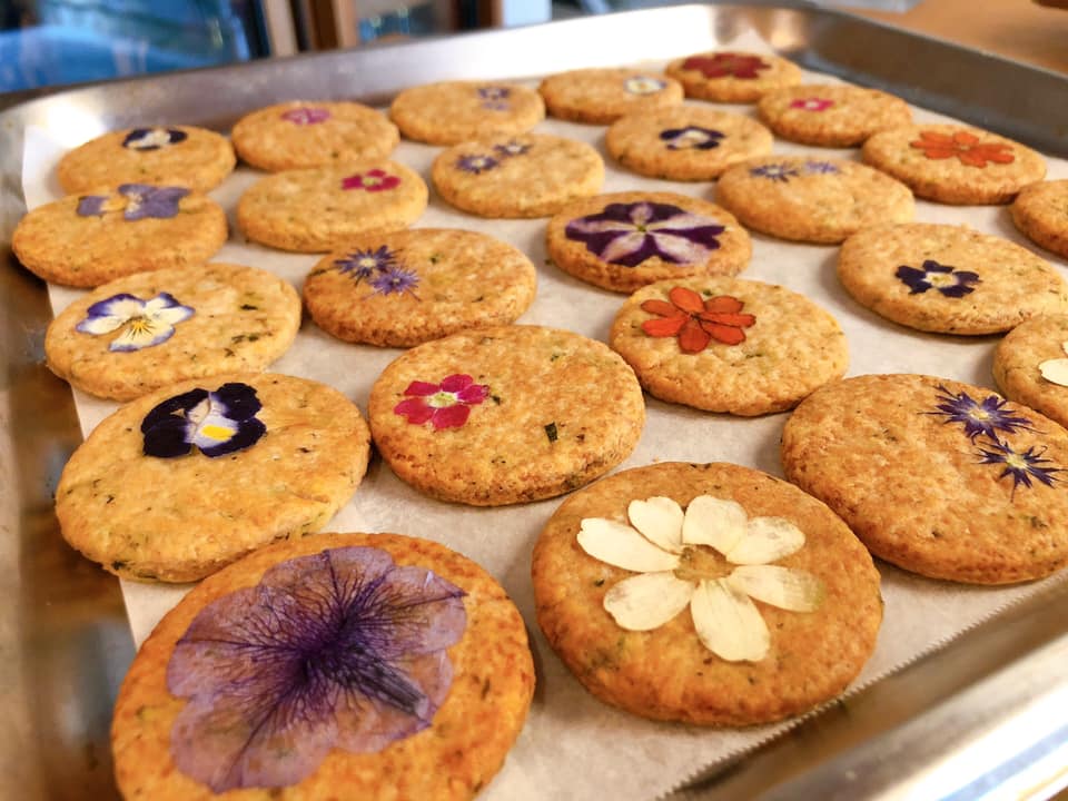 エディブルフラワー塩サブレも焼き上がりました♪おつまみに是非!