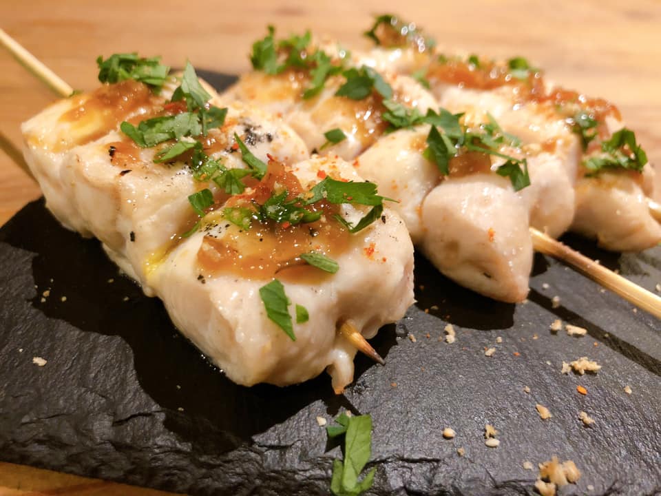 京赤地鶏のささみの炭火焼き鳥。