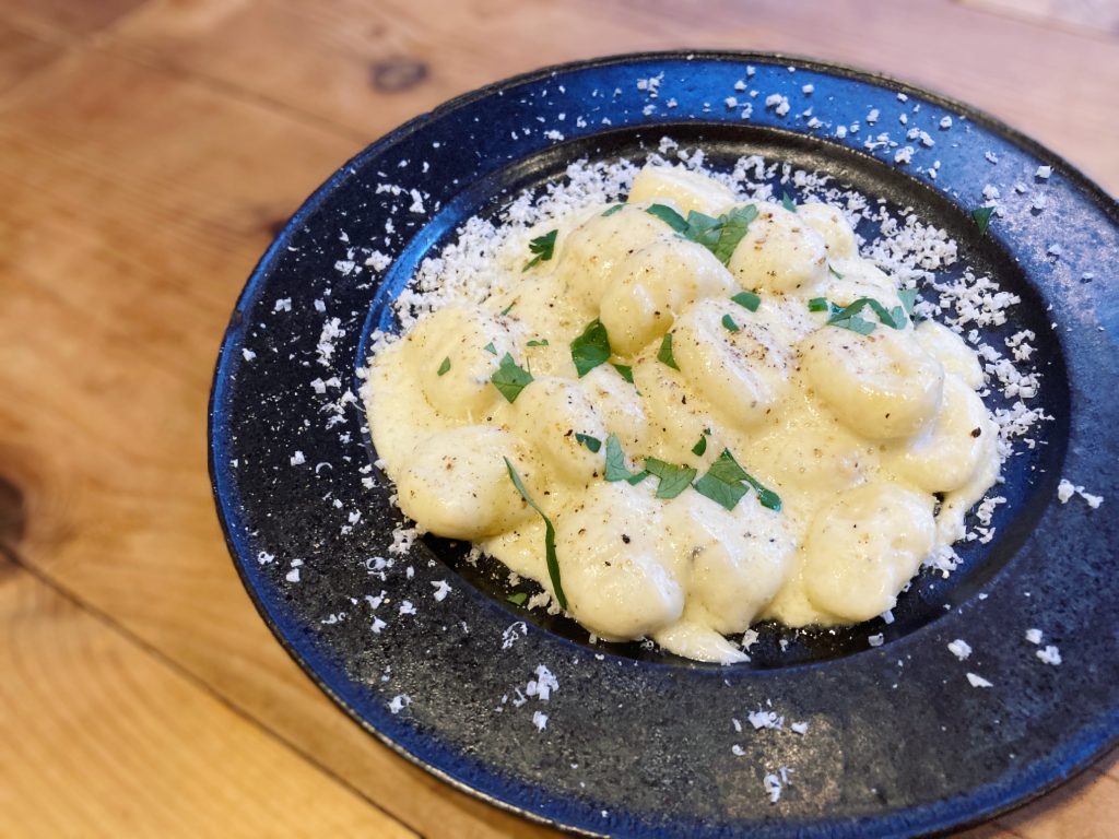 カマンベール、ウォッシュ、ブルー、マスカルポーネを贅沢に使ったチーズソース。ふんわりとした食感のニョッキに癒されます❤︎ パンも追加してソースをたっぷり味わってくださいね😊