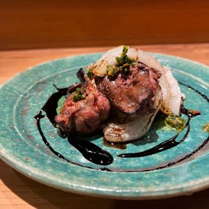鶏肝の炭火焼き 新玉ねぎのソテー