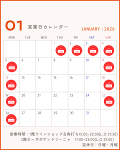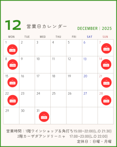 【12月、1月営業日のご案内】