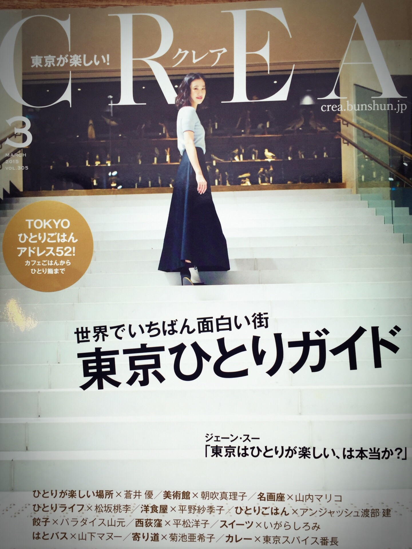 2015年2月6日発売のCREA3月号『東京ひとりガイド〜TOKYO×私が好きな場所〜』にて、おひとりさまを気軽に楽しめる名店としてご紹介頂きました!