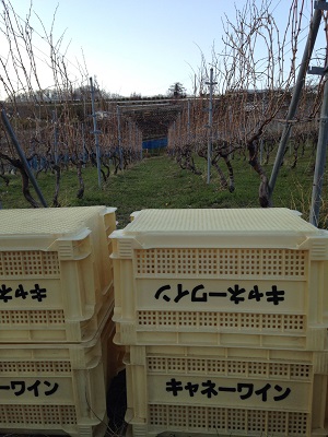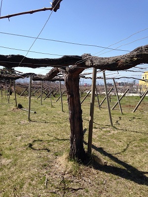 棚仕立ての甲州の中には迫力のある木もありました。樹齢は50~60年のものなのだそう。