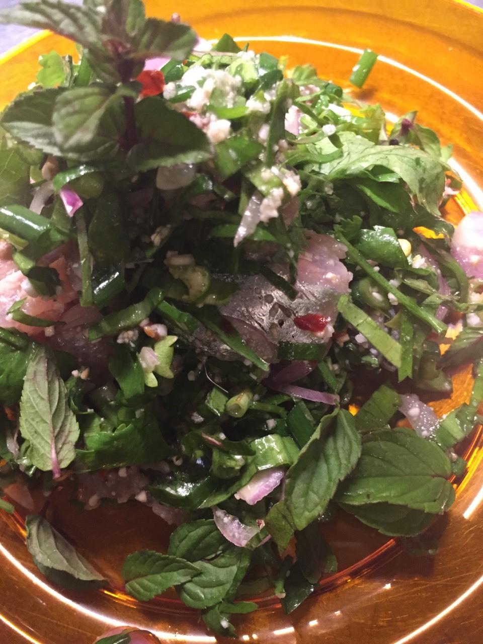 みもっとさんがお送りする新鮮なサンマを使った『サンマのラープ』は、まさに旬の味!