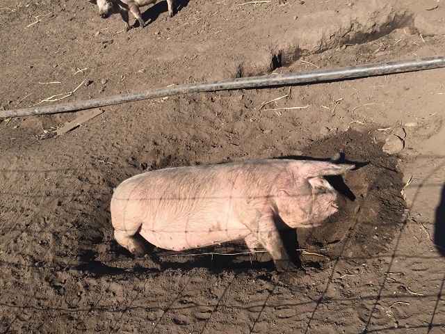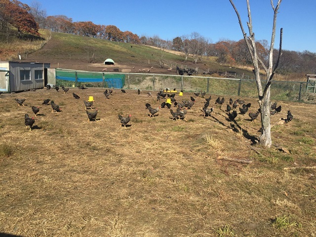 敷地内には黒軍鶏、鴨池、そして丘を活発に駆け上る放牧豚