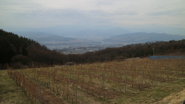南側に開けた畑、ということは、とにかく日当たりが良いということ。ここ東御は年間日照量も多く、特に年間の降水量も日本でも随一の少なさで、まさにブドウ栽培の適地と言われているそうです。