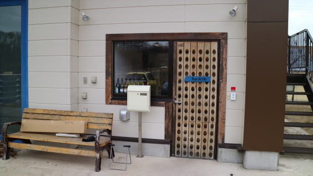 事務所の扉は、ピュピトル(シャンパーニュを造る際に使われる器具)。