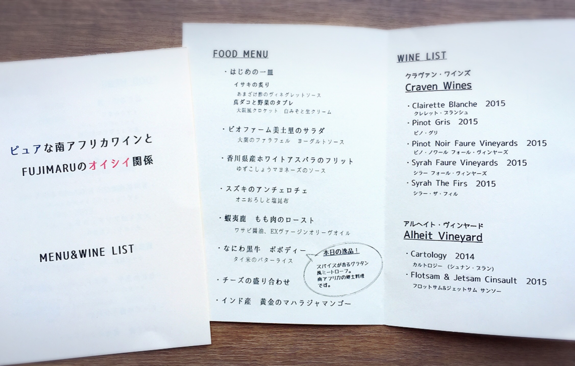 ピュアな南アフリカワインとフジマルの美味しい関係