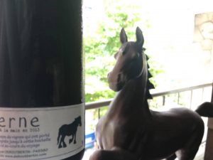 そして馬と言えば自然派ワインでしょうということで、境内の馬とワインをパチリ。