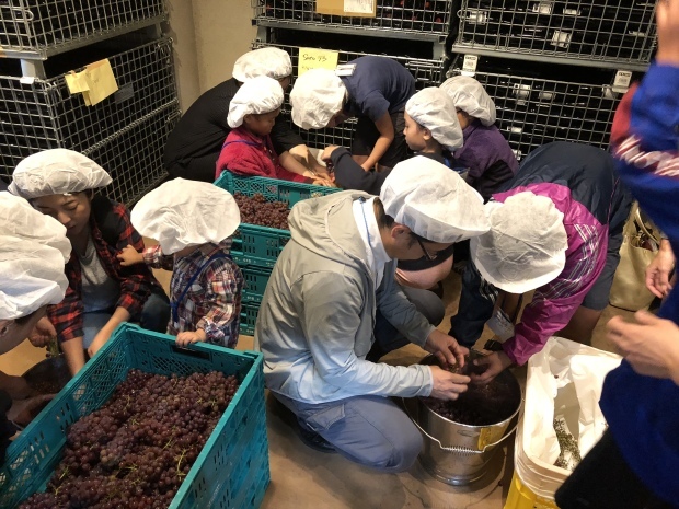 冷たいブドウを一生懸命足で踏み、実際にブドウを絞ったりと、大人の方でもなかなか体験出来ないような経験ができる本当に素晴らしいイベントだと思います!!