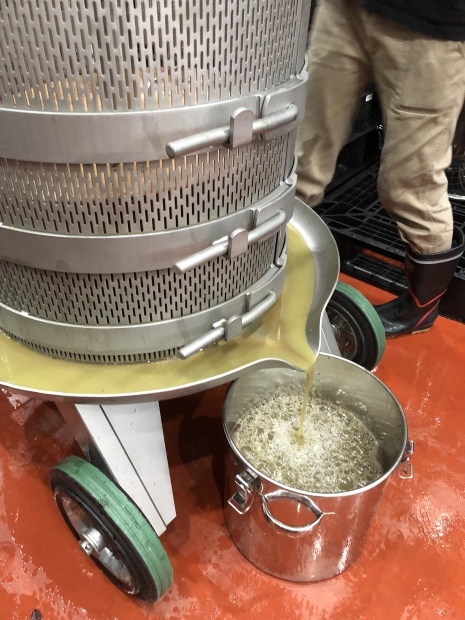 肌寒いワイナリーで一生懸命ブドウを絞っていただきたい