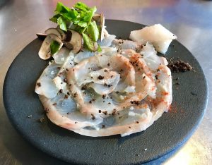 『活け〆 サメガレイのカルパッチョ』