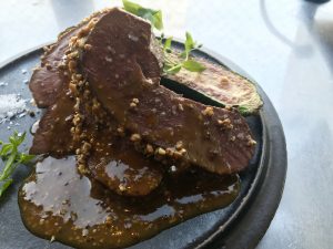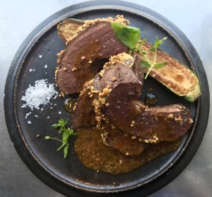 ソースはマスタードソースで周りには食感のアクセントになる香ばしいナッツを。