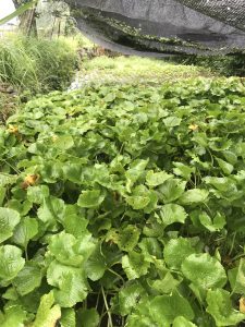 わさび棚の下にはクレソンも育てられており、わさびのツンとした辛さを受け継いでいる
