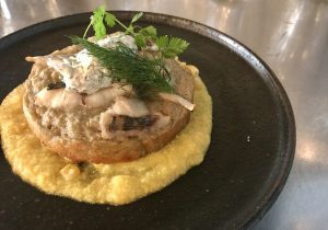 ” 真アジのガレット トウモロコシのソース “