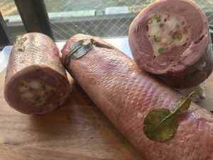 元々は冬に楽しむ保存食がルーツだそうですが、その手間隙かかる工程と見た目、美味しさから洗練されたという意の「galant」から命名されたガランティーヌ。