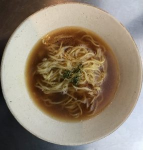 すすれば、小麦と玉子の甘味感じる麺にほどよく絡んだスープの美味しさとコンソメの良い香りが口いっぱいに広がって至福の時に。