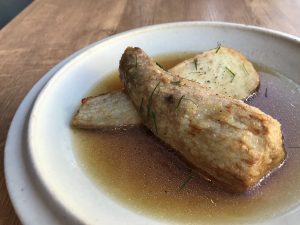 揚げた芋はコンソメをよく吸って、ねっとりとした食感と旨味、そして香ばしさも相まった複雑な香りを楽しめる一皿です。