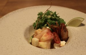 そんな白鳳をシマエビと合わせてヨーグルトで軽くマリネ、ライムとパクチーでエスニック風にしました!