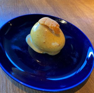 ウニの濃厚な旨味と半熟の卵の黄身が混ざり合う。