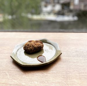 蝦夷鹿と豚肉のメンチカツ  ¥216″