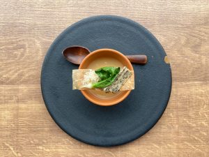 “神奈川県三浦産 黄金かぶのポタージュ ニボバターのアクセント“