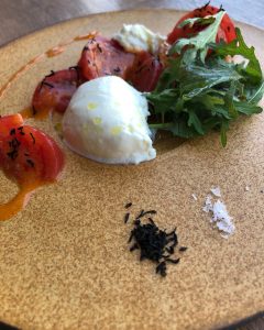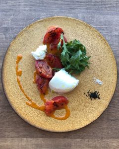 濃厚な旨味のジャージー牛モッツァレラは滑らか食感のムースにし、完熟トマトは甘味と酸味のバランスが最高なマリネに。